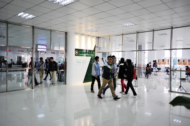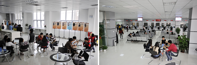 排队叫号机、咨询引导台、大显示屏提供校内信息发布,学生事务中心办事大厅总面积900平方米,除了拥有优雅的环境,中心还配备了免费wifi,学习桌椅等,并且充分利用场地,每逢周末学生事务中心放映励志电影,在办理学生日常事务的同时,也为学生提供了学习交流的平台。