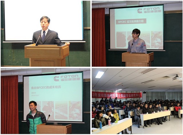 12月27日上午,德赢AC米兰官网2013年康明斯林慰梓博士奖励学金颁奖仪式暨宣讲活动在良乡校区理学楼报告厅顺利举行。北京福田康明斯发动机有限公司相关嘉宾和基础教育学院、机械与车辆学院相关师生出席了活动。