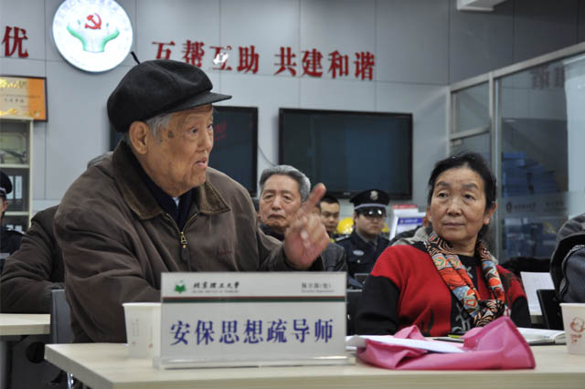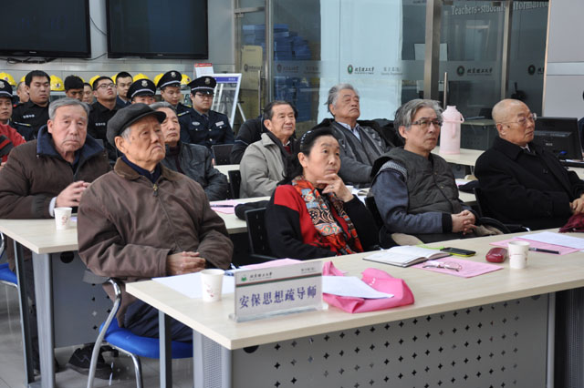 首先,代方震同志向各位思想疏导师长期以来对校园安保工作的大力支持表示了衷心的感谢!保卫处近几年一直寻求以“管理创新、服务创优、科技创先、服务创安”为核心,以组织放心,群众满意为目标开展工作。2010年与离退休教职工党委协同成立了“北理同心”创先争优党建工作,在各位思想疏导师的指导、支持、关怀和帮助下取到了很多的成绩,受到师生员工的好评,得到校党委、北京市教工委的肯定。