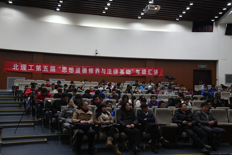 近年来,在校党委的领导和推动下,在教务处、基础学院、人文与社会科学学院等相关职能部门支持下,“思想道德修养与法律基础”课程组不断探索教学改革的新思路和新方法,坚持“育人为本、德育为先”的教育理念,秉承“德以明理学以精工”的校训,积极探索教学教改的新模式。2013年,我校“思想道德修养与法律基础”被评为教育部精品资源共享课,“年级汇讲”成为思想政治理论课教学改革的一个传统品牌。基础教育学院为推动学生课堂文化的建设,通过讲座报告、座谈、深度辅导、网络平台、手机短信等多种途径鼓励学生追求远大理想、树立正确的人生观和价值观,积极推进教育教学一体化,为思修课程年级汇讲活动的开展提供了有力的支撑。