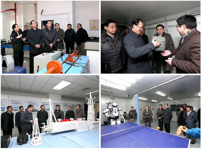 随后,毛伟明一行分别考察了我校国防科技重点实验室、生命学院重点实验室、信息与电子学院重点实验室、仿生机器人与系统重点实验室,分别听取了重点实验室相关负责人的介绍与讲解,并对实验室今后的建设与发展提出了建议。