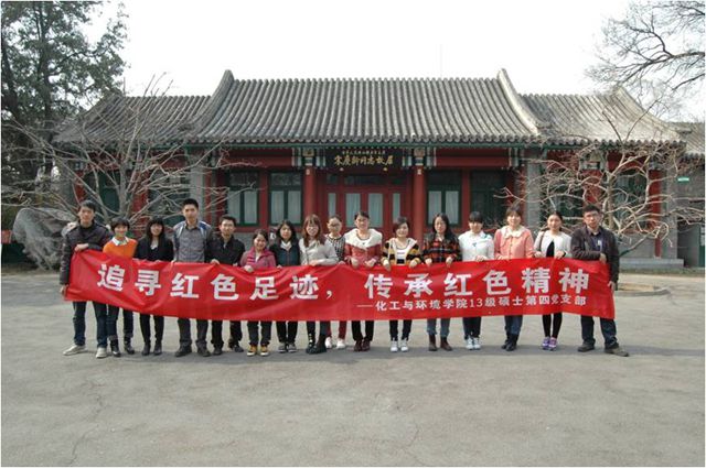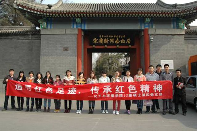 早春三月,阳光灿烂,万物勃生。2014年3月16日,化工与环境学院2013级硕士第四党支部开展了本学期的第一次党建创新活动, “追寻红色足迹,传承红色精神”---宋庆龄故居参观学习与社会调查。伴着清晨凉爽的春风,支部一行来到了宋庆龄故居,开始了一天的具有思想教育意义和趣味性的党建活动。此次支部活动分为“求学励志”、“党史竞赛”、“问卷调查”、“趣味活动”等四大部分,希望能够通过多方面、所视角的方式提高学生党员的思想建设,也希望能够通过一些趣味、调查环节激发学生党员关注民生、热爱生活的态度,从而保持良好心态,为以后的工作、生活打下良好的基础。