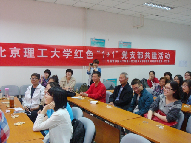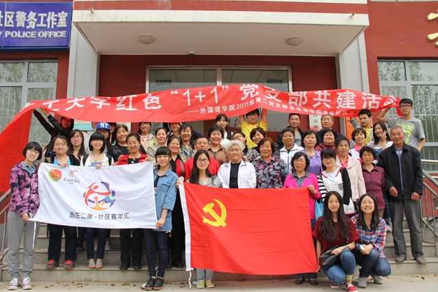 在纪念“五四运动”九十五周年到来之际,以深入基层,了解社会为目标,德赢AC米兰官网外国语学院本科生第二党支部联合化学学院良乡校区本科生第一党支部与良乡苏庄二里社区党支部开展了红色“1+1”党支部共建活动。经过了多次沟通和充分的准备后,5月9日,在母亲节即将到来之际,同学们前往苏庄二里社区与老人们进行了近距离的交流,献上大学生对老人们良好的祝愿,拉开了红色“1+1”党支部共建活动的序幕。