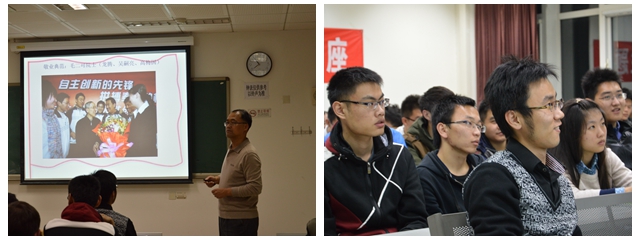 之后,在践行核心价值观的具体措施方面,刘书记告诫同学们,一是要坚定理想信念,二是要解放思想,三是要加强学习,四是积淀文化,并逐一向同学们详细举例阐明。最后,他以毛主席《纪念白求恩》中的一句话作为结束语:一个人的能力有大小,但我们要做一个高尚的人,一个纯粹的人,一个有道德的人,一个脱离低级趣味的人,一个有益于人民的人!至此,讲座在热烈的掌声中结束。