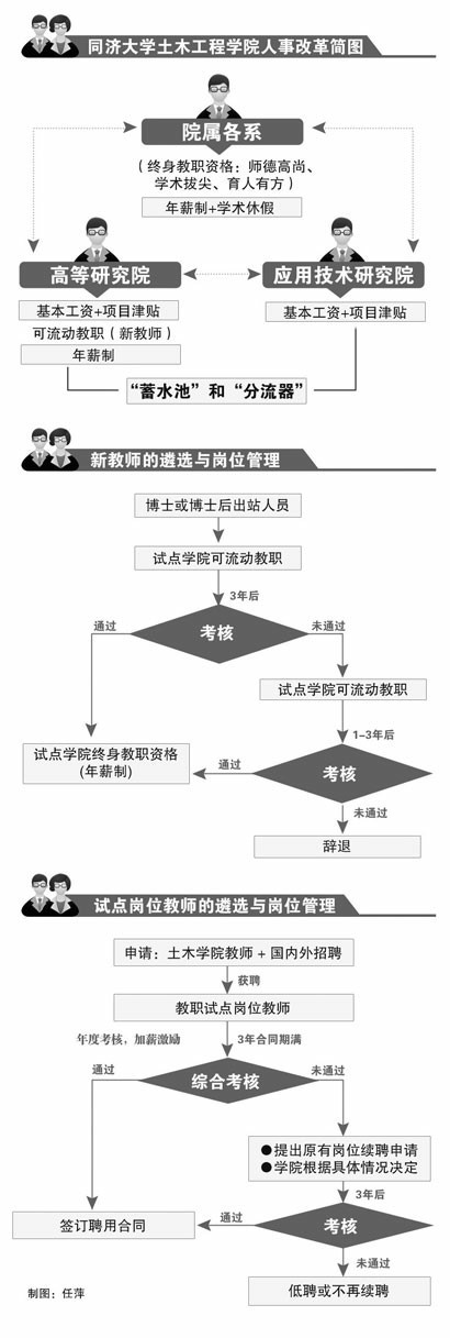 跻身国家首批试点学院的同济大学土木工程学院,这个学期也启动了新的人事管理办法。学院的最新一轮改革目标明确:在聘任、晋升、薪酬、考核评价等涉及人事制度核心的环节作出改革、改良,用好制度留住好老师,让好老师带出好学生。