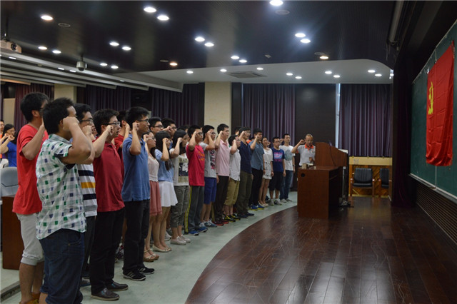 为迎接党的94岁生日,进一步加强党员先锋模范意识,全面推进基层党建工作,7月1日晚,自动化学院第一届党员先锋训练营闭营典礼暨七一重温入党誓词活动在研究生楼101胜利召开。校研工部部长郝洪涛,自动化学院党委书记、院长王军政,党委副书记、副院长潘峰,院长助理、党委委员邓方,党委委员姚小兰、训练营成员及新入党的党员参加了典礼。活动由训练营指导老师潘佳奇主持。闭营典礼在嘹亮的国歌声中拉开帷幕。