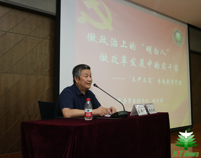 根据学校党委“三严三实”专题教育安排,9月28日下午,常务副书记赵长禄做了题为“做政治上的‘明白人’、做改革发展的实干家”党课报告,党委书记张炜出席,参加报告会的有学校正处级干部、基层党委副书记、机关党务部门处级干部共120余人,党委组织部部长张笈主持报告会。