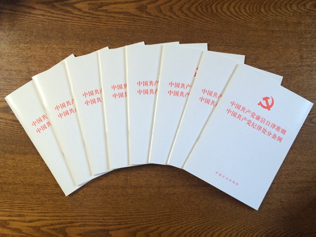 学校纪委办公室已经给学校所有教职工党支部包括离退休教职工党支部及每位处级以上领导干部发放了《准则》和《条例》的单行本,学习完之后,纪委要组织每位处级以上领导干部进行考试,检查学习效果。