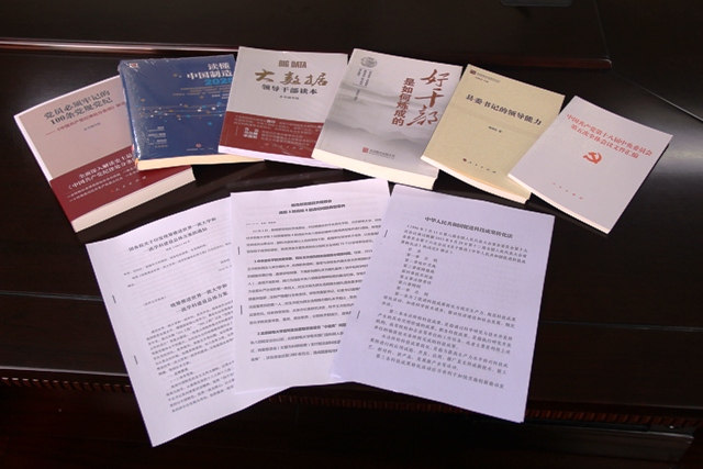 学院党委结合“三严三实”教育和十八届五中全会精神,为每位理论学习中心组成员准备了丰富的学习材料——《县委书记的领导能力》、《好干部是如何炼成的》、《读懂中国制造2025》、《大数据领导干部读本》、《党员必须牢记的100条党规党纪——<中国共产党纪律处分条例>解读》,要求大家加强日常理论学习,并将学习成果运用到本职工作中,共同推动学院发展建设。