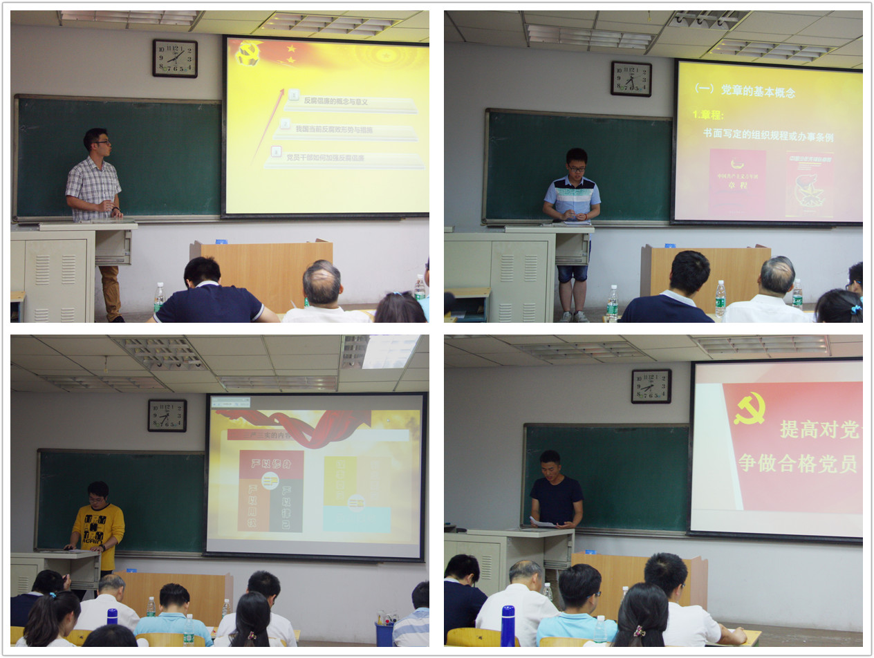 微党课决赛采取现场演讲的形式,七名选手依次上台,分享他们对“两学一做”的认识感悟。选手们以当代大学生的视角解读党章党规、思考反腐与发展,以青年人充满活力的方式讲述他们眼中的中国情怀与大国之梦。本科生党员黄美结合时下的网络热词生动又不乏严肃地介绍了“两学一做”学习教育活动的重要意义,配合新华社推出的“四进四信”主题曲,给现场评委和观众留下了深刻印象;硕士生党员田喆童则从老百姓身边的小事说起,深入浅出为大家剖析了“五大发展理念”在国家发展和人民生活中的积极影响;博士生党员曾豪列举了一系列在党的十八大以来落马的“老虎”“苍蝇”,鲜活的案例让我们看到党中央从严治党的坚定决心,也提醒所有的党员同志时刻谨记共产党员的组织纪律和作风要求,踏踏实实为人民服务,兢兢业业做合格党员。选手们精彩的演讲获得台下阵阵掌声,听其言,观其为,微党课形式虽“微”,却将“两学一做”的种子播撒开来。