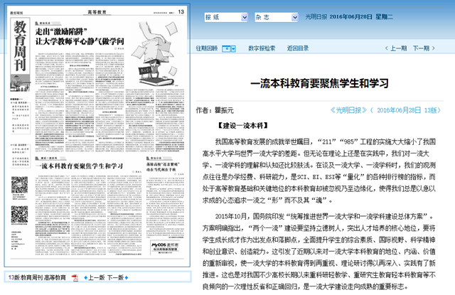 2015年10月,国务院印发“统筹推进世界一流大学和一流学科建设总体方案”。方案明确指出,“两个一流”建设要坚持立德树人,突出人才培养的核心地位,要将学生成长成才作为出发点和落脚点,全面提升学生的综合素质、国际视野、科学精神和创业意识、创造能力。这引发了近期以来对一流大学本科教育的地位、内涵、价值的重新审视,使一流大学的本科教育得到再重视、理论研讨得以再深入、实践有了新推进。这也是对我国不少高校长期以来重科研轻教学、重研究生教育轻本科教育等不良倾向的一次理性反省和正确回归,是一流大学建设走向成熟的重要标志。