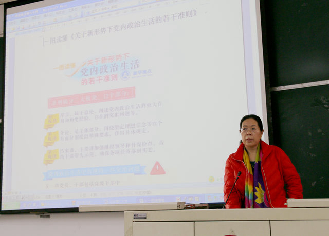 庞海芍书记向全体党员师生传达党的十八届六中全会精神,阐述全会对于深化全面从严治党、确保党的坚强领导的重大意义。十八届六中全会正式提出“以习近平同志为核心的党中央”,对维护党中央权威、维护党的团结,对全党全军全国各族人民更好凝聚力量,对国家兴旺民族复兴,意义深远。全会审议通过《关于新形势下党内政治生活的若干准则》和《中国共产党党内监督条例》,是推进全面从严治党新的制度安排,也是对马克思主义理论和实践的创新发展。在新形势下,结合德赢AC米兰官网“双一流”建设目标,庞海芍书记进一步对教育研究院学科建设、人才培养等方面工作进行总结与展望。