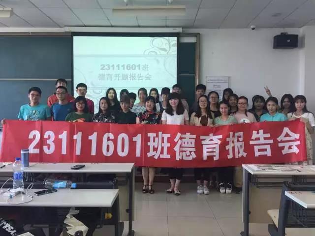 2016年5月23日,北理工法学院2016级本科生德育开题报告会在良乡校区综合教学楼B-402教室和综合教学楼B-403举行。学校统战部副部长吴文君老师、法学院副书记副院长张爱秀老师、2016级班主任杨宽老师以及2016级辅导员韩笑老师莅临会场,聆听了同学们分享的成长故事。