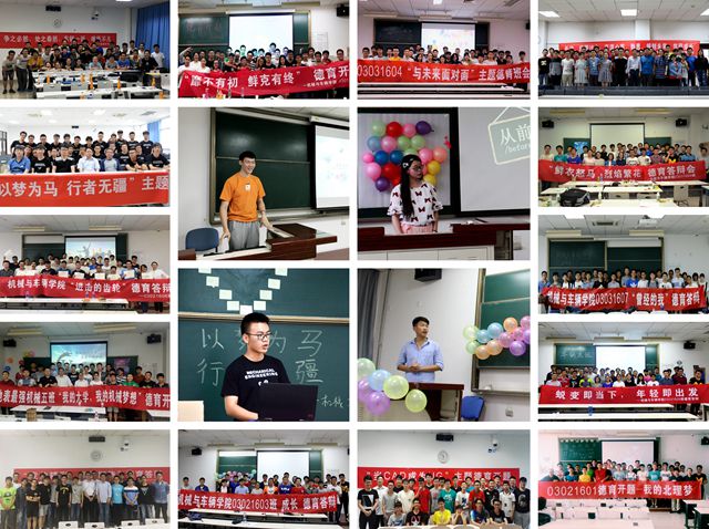 03021601、03021605班均以“梦想”为主题召开班会,指出年轻是可以编织梦想的时光,同学们应把握当下,实现梦想;03021602班以“当CAD成为UG”为主题,其中CAD是二维制图软件,UG是三维制图软件,既有专业特色,又象征着成长是一个人逐渐立体和成熟的过程;03021603、03021604班均以“期待、拼搏”为主题,体现了同学们渴望拼搏、追逐梦想的志愿;03021606班以“进击的齿轮”为主题,并在班会中为每一位同学颁发班级中其他同学亲手设计的奖状,极具创意;03911601班以“以梦为马 行者无疆”为主题,提出了“以梦为马,行者无疆,虚怀若谷,青春永驻!”的口号,强调心怀梦想,激励自身奋斗。