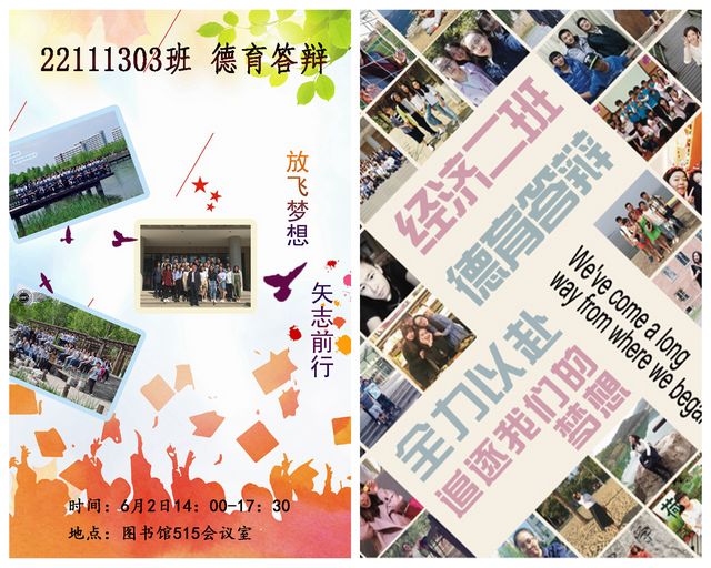 22111301班的德育答辩主题为“青春不散”。同学们在展示中或回顾四年大学生活,或分享保研、考研和找工作的经历,或憧憬未来美好的生活,或表达对老师、朋友、学院和学校的不舍。班主任陈秀梅老师对同学们的答辩内容进行了总结,对未来同学们学习生活提出了努力不负青春的希望。22111302班的德育答辩主题为“全力以赴,追逐我们的梦想”。人文学院党委副书记李冰老师参与答辩,他结合自己的学习和工作经历与同学们交流了关于大学学习生活的感悟,表达对同学们的祝福。德育答辩中班级播放了同学们在大学各个时期的个人照和合影为线索的回顾视频。个人展示环节,同学们用各自的方式和言语表达对大学生活的感悟。班主任吴建民老师在总结中肯定了同学们四年的付出和成绩,也表达了他对同学们未来工作、学习和生活的祝愿。22111303班的德育答辩主题为“放飞梦想,矢志前行”。答辩过程中播放了由经济三班集体活动的照片制作而成的视频,反映了大家的精彩大学生活。同学们追忆往昔、展望未来,答辩会在温馨和睦的氛围中进行。最后班主任张雷老师肯定同学们做到了德育开题时其对同学们提出的两个“成”——心智成熟,专业成长,并期待同学们在未来实现第三个“成”——领域成功。22121301社会工作班的德育答辩同学们从照片中回忆往昔,在分享中畅谈未来。一部分同学讲述了自己与其他同学之间的友情,回顾一起走过的岁月;一部分同学分享了自己的收获:知识、经验、一份梦想成真,让在场同学体味到匆匆时光中的苦辣酸甜;还有部分同学表达了对老师谆谆教诲的感谢,对同窗苦乐相伴的感谢。辅导员孙硕在点评中肯定了班级同学积极向上和团结协作的精神。最后,班主任郑佳然老师对同学的答辩进行了点评,并赠送了亲手制作的小礼物。