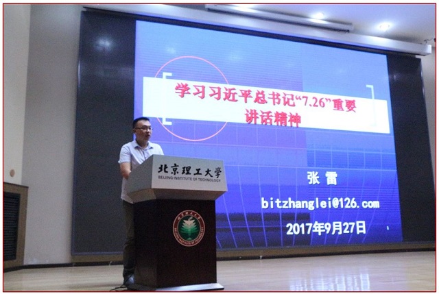 成立仪式结束后,举行了题为“学习习近平总书记在省部级主要领导干部专题研讨班上的重要讲话精神”的专题讲座。讲座由马克思主义学院张雷老师讲授。他以习总书记7.26重要讲话内容为核心,从“讲话”的指导意义、政治意义、理论意义和实践意义等四个方面出发,引导和帮助师生全面理解把握“讲话”精神。
