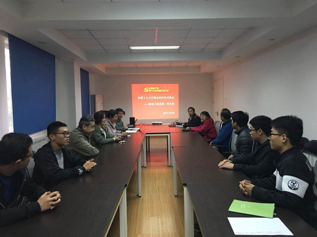 在集中收看十九大开幕会盛况后,按照学校统一部署,学院在第一时间认真组织师生开展讨论,掀起学习贯彻十九大精神的热潮。 机械与车辆学院党委组织师生党员群众认真学习研讨,深刻认识和把握大会报告的精神实质和丰富内涵,贯彻落实好大会报告提出的各项任务,全院上下将思想和行动统一到党的十九大精神上来,掀起学习宣传贯彻党的十九大精神的热潮。