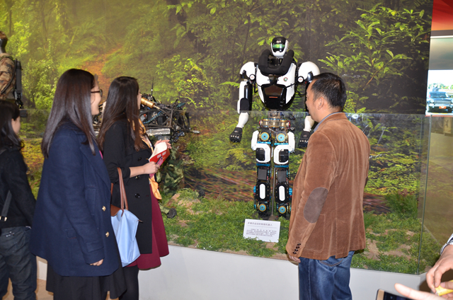 其中第七展厅“实现强军目标,建设世界一流军队”主题展中展出了由机电学院智能机器人研究所研发的多模态智能运动机器人。机器人胸前的校徽彰显着北理工机电学院近年不断突破关键技术,迈向国际领先水平的科研攻坚能力,师生们在这系列“北理工牌”的智能机器人前久久驻足,合影留念。