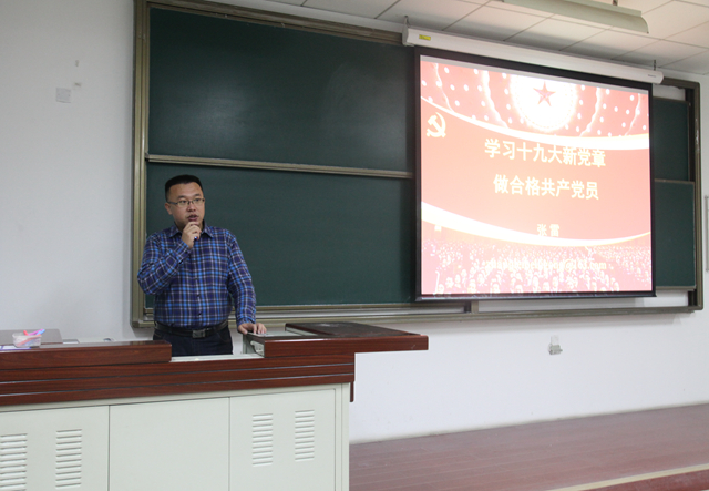 张雷讲座主题为《学习十九大新党章,做合格共产党员》,课程就党章的基本概念,党章的地位,党章的作用进行了详细的阐述。张雷带领同学们一起回顾了从中共一大到十九大之间,党章从初步编写制定到逐步完善的过程,并详尽分析了十九大党章中新修订的八项内容。课程最后,张雷以鲜活的案例再次强调了要想成为一名合格的共产党员,就必须遵守党章,要有坚定的信仰,不仅组织上入党,更要思想上入党,“组织上入党一生一次;思想上入党一生一世”,坚定了同学们入党的信念以及对信仰的坚守。
