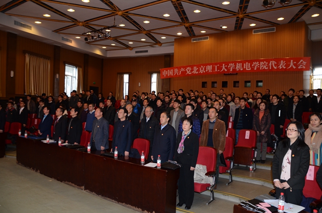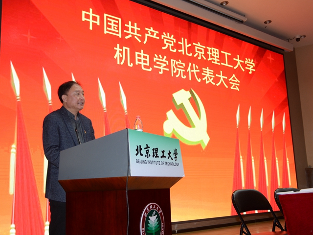 机电学院党委书记王伟同志做了题为《助力一流 砥砺奋进 努力建设军工特色创新融合发展的机电学院》的报告。报告回顾了四年来在学校党委行政的正确领导下,学院党委带领全院师生在党的建设、思想政治、学科发展、队伍建设、人才培养、科研成果、平台建设、国际交流合作等方面取得的成绩,并对学院党委未来的工作提出了建议,希望下一届党委坚持学习宣传贯彻党的十九大精神,以习近平新时代中国特色社会主义思想为指导,全面加强思想政治建设,推进基层组织规范化建设,党风廉政建设,文化建设;强化特色、拓展方向,提升学科建设水平;培引结合、分类管理,汇聚高端人才队伍;强化基础、提高素质,切实提升人才培养质量;协调发展、交叉融合,增强科技持续创新能力;量质并重,提升内涵,加速办学国际化进程,为学校“双一流”建设贡献智慧和力量,献礼北理工80周年校庆,献礼我党百年华诞,献礼中华民族的伟大复兴!