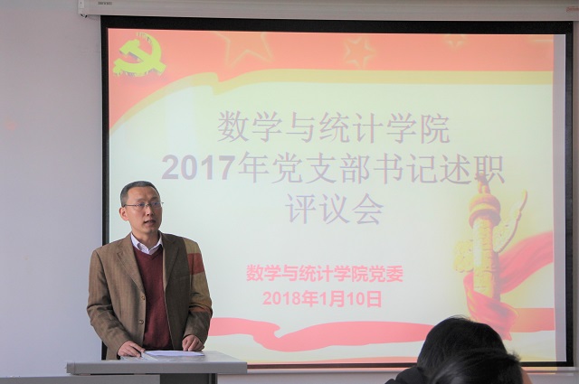 1月10日上午,数学与统计学院党委在良乡校区理学楼A-305召开了2017年党支部书记述职评议会。数学与统计学院全体党委委员、教工党支部和学生党支部书记、组织委员、宣传委员,以及教师和学生代表共49人出席了本次评议会,大会由学院副院长、副书记马晓宁主持。