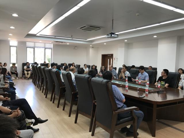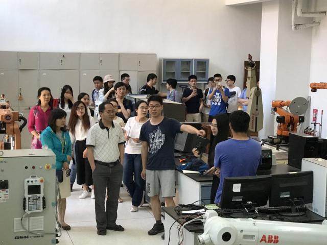 5月31日上午,33名师生党员首先来到南开大学津南新校区,受到南开大学计算机与控制工程学院师生的热情接待。南开赵新院长和夏元清分别介绍了学院近年来的科研进展以及取得的成果。双方党支部书记分别介绍了各自支部成员,并就党建、教师思政工作、科学研究、人才培养等情况进行了深入交流。座谈交流结束后,大家一起参观了南开大学计控学院的仿真机器人实验室、微操作机器人系统实验室和移动与飞行机器人实验室。南开大学的老师同学向大家全面、详细地介绍各个实验室的实验项目。