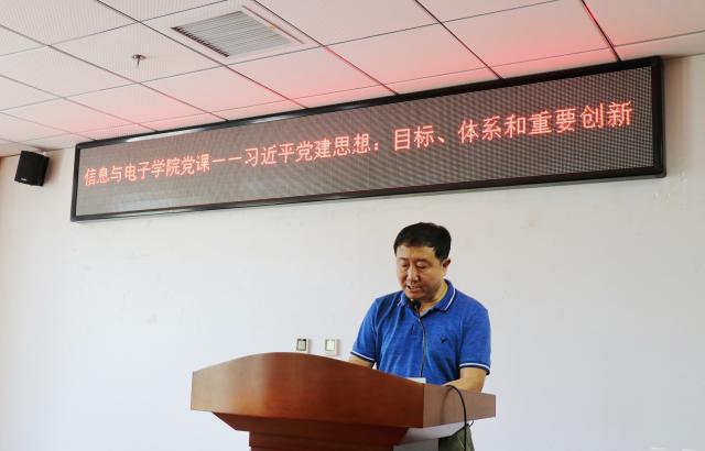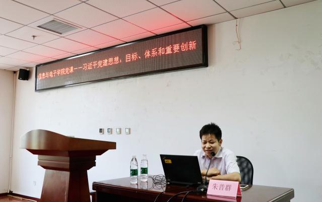 为深入学习贯彻习近平新时代中国特色社会主义思想和党的十九大精神,在中国共产党成立97年纪念日到来之际,信息与电子学院于6月21日下午邀请中央党史和文献研究院当代马克思主义研究部党建研究处处长、研究员朱昔群,讲授《习近平党建思想:目标、体系和重要创新》为题的专题党课。本次党课由学院党委书记薛正辉主持,学院全体教工党员和学生党员代表参加。