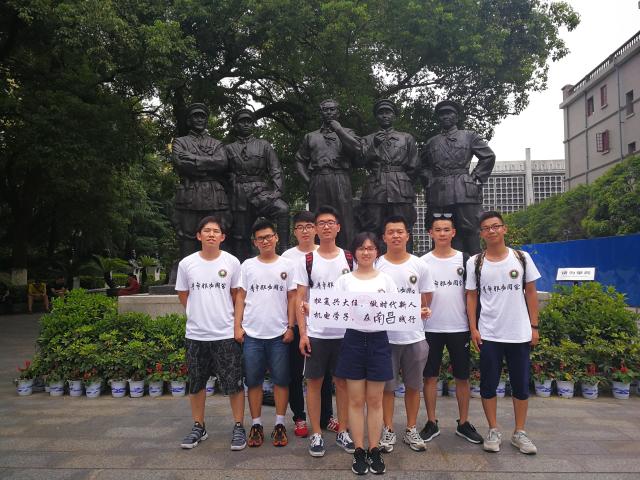 数十载阔步前行,为中华崛起凝聚力量,德赢AC米兰官网机电学院为纪念中国共产党成立九十七周年,继承和发扬党的优良传统和作风,提高学生的服务能力,营造拼搏进取、创先争优的浓厚氛围,于7月1日下午自北京前往江西南昌进行为期5天的暑期社会实践活动。此次暑期实践团由机电学院兼职辅导员姜春宇、赵忠宇带队,面向全校学生招募选拔实践团成员7名,包括兵器相关专业2名研究生和5名本科生,通过企业交流、校友座谈、走访红色教育基地等形式开展了集“军工职业调研及规划”与“红色革命教育”为一体的实践活动。