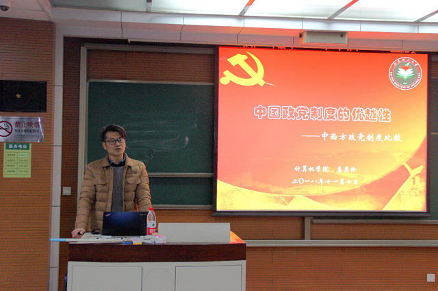 为深入学习习近平新时代中国特色社会主义思想和党的十九大精神,增强“四个意识”,树立“四个自信”,北理工计算机学院党委于2018年11月开启了本学期“弘扬爱国奋斗精神,建功立业新时代”主题党课。12月13日下午,主题党课再次来到良乡校区,计算机学院党委副书记、副院长奚英伦在良乡校区理学楼为在场同学做《中国政党制度的优越性》专题党课。计算机学院良乡校区学生工作干部、2017级党员、预备党员、入党积极分子共101人参加了本次党课。