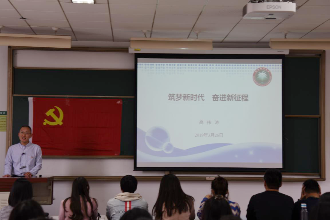 会上,高伟涛作了题为“筑梦新时代,奋进新征程”的主题党课,针对中国梦的伟大实践和如何争做新时代追梦人进行了生动讲述。结合今年是中华人民共和国成立70周年、五四运动100周年的新形势,激励广大学生党员弘扬以爱国主义为核心的民族精神和以改革创新的时代精神,凝聚青年的力量,珍惜韶华、奋发有为,争做新时代的奋进者、开拓者和奉献者。