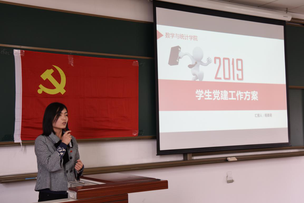 党建工作负责教师杨青萌对2019年学生党建工作进行梳理解读,重点从做好党员发展和管理、严格执行组织生活制度、强化监督检查三个方面阐述了党建工作的新变化、新要求、新举措,进一步提高学生党支部工作的科学化程度、制度化标准和规范化水平。