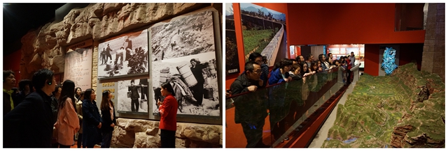 在红旗渠纪念馆,跟随讲解员的介绍,党员们再次感受到红旗渠修建时所克服的重重困难以及林州人民克服万难积极向上的勇气和决心。红旗渠的设计和修建,涌现出一批如杨贵、吴祖泰等身先士卒、聪明勇敢的模范榜样,塑造了不怕困难、无私奉献的共产党人形象, 是对伟大的红旗渠精神的大力弘扬。