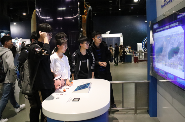 讲座结束之后,同学们来到了科技馆四层的“太空探索”展厅。展厅设置了飞天之梦、登天之梯、人造卫星、载人飞天、奔向月球、迈向深空六个主题展区。从嫦娥奔月到万户飞天,再从我国第一颗人造卫星“东方红一号”发射到玉兔二号驶抵月球表面,展馆生动形象的展示了中国航天从历经艰辛到举世瞩目的曲折历程,给同学们留下了深刻的印象。