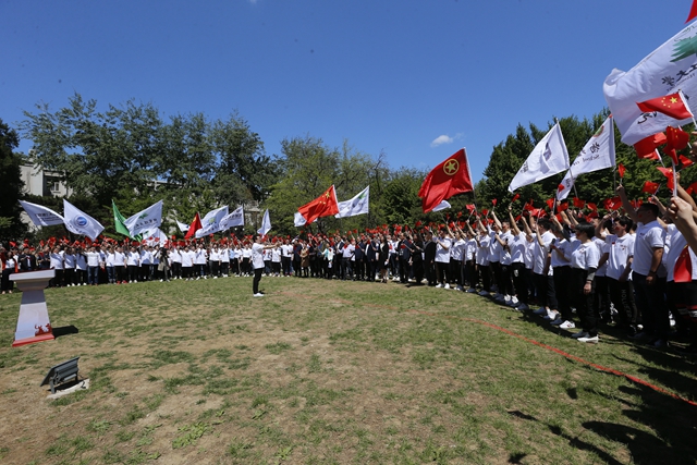 中午时分,观看过大会实况的师生们纷纷从校园四面八方齐聚学校中心花园,参加一场特别的学习教育活动。校长张军院士、党委副书记包丽颖教授,北理工思政课教师崔建霞教授,北理工校外辅导员、中国兵器北化研究院集团辽宁庆阳特种化工有限公司党委书记、董事长杨世泽,材料学院党委书记张青山、院长庞思平,学校有关部处负责人、书院/学院副书记、青年教师以及辅导员班主任等走进青年学生中间,与同学们共同再次品读习近平总书记重要讲话精神,带动北理工师生对重要讲话精神的学习理解走进心扉里、走进信念里。