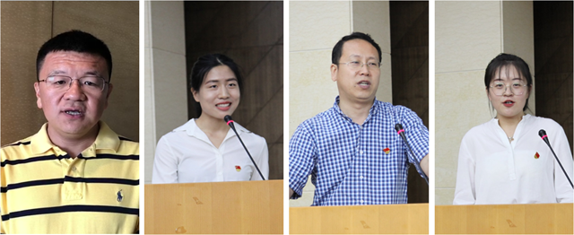 优秀共产党员代表北理领航人白影春、熊建银、潘勤学在全国多个招现场通过录制视频的方式向大会表达了祝贺,他们纷纷表达要做好北理领航人,为有效提升生源质量、提高学校影响力、增强大学与重点高中的合作交流活跃度不断努力,助力学校“双一流”建设。学生优秀共产党员代表朱漫福表示,将继续秉持“求实创新”的理工精神与“严谨认真”的工科态度,勇做走在时代前列的奋进者、开拓者、奉献者。先进基层党支部书记代表李雪原、鲁雪田表示,被评为“先进党支部”既是鼓励,更是鞭策,党支部将继续夯实基础、求实创新,争取更大的进步。