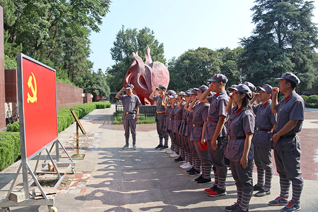 新县作为鄂豫皖革命根据地的首府,遍布红色基因,正像习近平总书记所指出的那样,“一寸山河一寸血,一抔热土一抔魂”。可歌可泣的英雄故事、镌刻历史的遗址遗物,汇聚成一股红色力量,感染了每一位参加学习的师生们。在鄂豫皖苏区首府革命博物馆、中共中央鄂豫皖分区旧址、红四方面军总部旧址等处,大家通过图文、视频和一件件实物,直观感受了党和人民在大别山与敌人艰苦卓绝的斗争历程,切身感受了革命先烈不怕牺牲、信念如山的精神。在鄂豫皖苏区烈士陵园,师生为烈士敬献花圈并鞠躬缅怀,随后大家面对鲜红的党旗和革命前辈,在党委书记周连景的领誓下重温入党誓词并庄严宣誓,感悟入党初心、坚定理想信念。