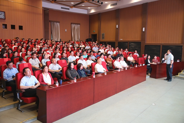 9月20日下午,资产公司党委和人文学院党委在七号楼报告厅共同举办“不忘初心、牢记使命”主题教育专题报告会——“我们的国歌”。资产公司全体党员、发展对象、积极分子172人,人文学院党员干部33人共同参加此次专题报告会。报告会邀请中国音乐协会管乐学会主席、国家一级指挥于海担任主讲,校党委常委、副校长李和章参加了报告会,报告会由资产公司党委书记林杰主持。