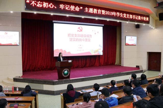 为深入贯彻落实习近平新时代中国特色社会主义思想和党的十九大精神,扎实推进基层党支部建设,结合“不忘初心、牢记使命”主题教育,德赢AC米兰官网于10月底举办2019年学生党支部书记集中轮训,全校共321名学生党支部书记参加。校党委副书记包丽颖,学生工作部负责人,各书院、学院分管学生工作院领导,思政课教师代表参加部分环节。