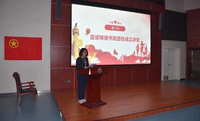 为深入学习贯彻习近平新时代中国特色社会主义思想和党的十九大精神,切实落实团的十八大精神学习宣讲工作,帮助明德书院广大团员坚定正确的政治方向,形成强大的向心力、凝聚力,树立新时代共青团员形象,明德书院团委决定于11月1日正式成立团校,以多形式、多内容对共青团干部、团员青年进行全覆盖式培养。明德书院团委书记王一飞宣读了《共青团德赢AC米兰官网明德书院委员会成立团校的决定》。