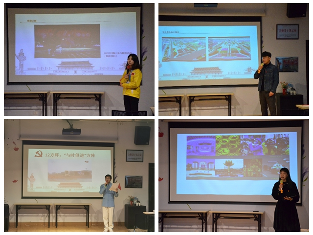 在新中国成立70周年庆祝活动中,4631名北理工师生光荣参与国庆盛典,传承红色基因,书写精彩华章。参与新中国成立70周年庆祝活动的5名学生向退休老党员介绍自己在盛典中承担的工作内容,以及工作感悟。毛艺轩和荣锟介绍了所在的数字表演与虚拟仿真技术组在群众游行、联欢晚会创意及排练、集结疏散、观礼人员服务、电视转播机位等任务中的仿真工作;张倩倩讲述了澳门“莲花绽放”游行彩车设计的背景、过程和体会;蒋智颖分享了“与时俱进”群众游行方阵从排练到国庆当天的故事;杨静娴回顾了国庆联欢活动的场景和感受。