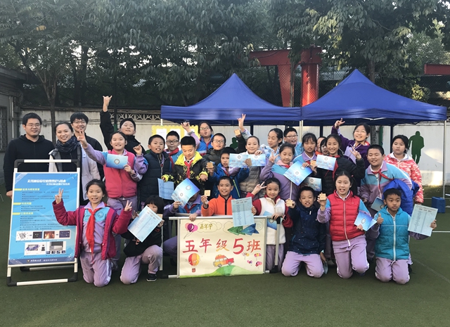下午2点至5点,理工附小的学生分年级在校园里开始了一场科技之旅。每个展台都设置了参观体验和实践制作等活动,学生们欢快地在操场内穿梭,在参观和动手体验的过程中,触摸科技,打开梦想的画卷。在我们通信技术研究所第二党支部和五(5)班搭建的展台内,同学们踊跃地提问、竞相争答数学题,在演示环境里走动,细致观察工控机上的演示效果,并和现场的老师开展了互动讨论。