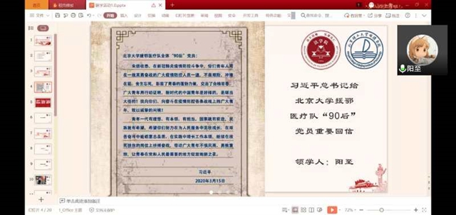 为深入学习贯彻习近平总书记给北京大学援鄂医疗队“90后”党员重要回信精神,积极响应“担复兴大任,做时代新人”主题教育活动的号召,4月10日下午,明德书院2018级明宸团支部和法学院研究生第一党支部、2019级学硕团支部的同学们共同开展了“共学回信精神,同担复兴大任”联学共建活动。明德书院、法学院专职团干部参加了此次活动。活动分为学习理论知识、讲述抗疫故事、讨论学习方法和展示抗疫作品四个部分。同学们从单个支部走出去,结识新朋友,互相学习交流,收获颇丰。