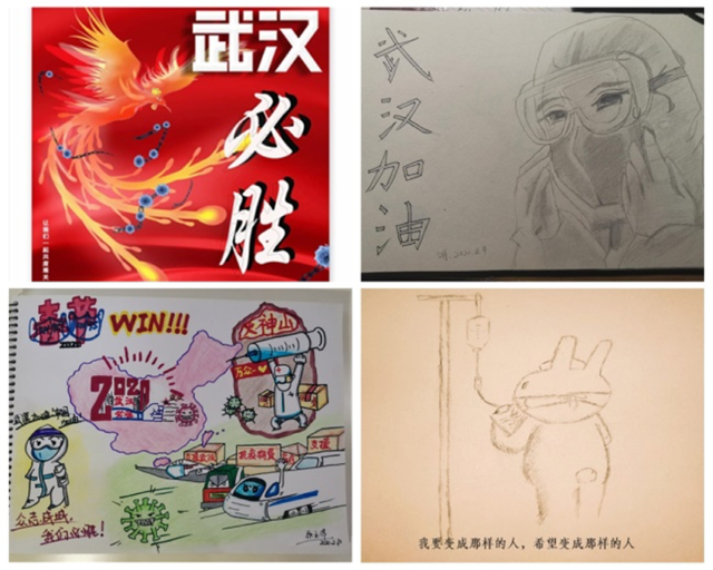 疫情期间,学生利用居家时间,进行了形式多样、丰富多彩的创作,以此来表达对一线医务人员的崇高敬意和打赢疫情狙击战的决心。学生借此机会分享了自己的作品及创意。明德书院明宸团支部杨帆展示了海报作品《浴火重生,武汉必胜》,如同一只浴火重生的火凤凰,武汉一定能够突破病毒的锁链,这座英雄的城市必将赢得胜利。法学院2019级学硕团支部张箫予分享了原创视频《医者》,表达了对医护人员舍小家为大家的敬佩之情。大家将心意融入创作,用作品传递温暖与力量,以青年人的方式为抗疫加油。