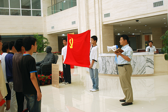 王悦音书记在讲话中首先祝贺了全体新发展党员,指出入党宣誓是每名党员必经的一个环节和仪式,学院此次在徐特立先生铜像前组织宣誓活动就是要让大家铭记党员身份,以此为起点不断提高党性修养,并希望全体新党员在学习、生活和工作的方方面面都要做到高标准、严要求,特别是在即将到来的07级学生搬迁过程中积极主动,发挥先锋模范和带头作用,共同做好搬迁相关各项工作。