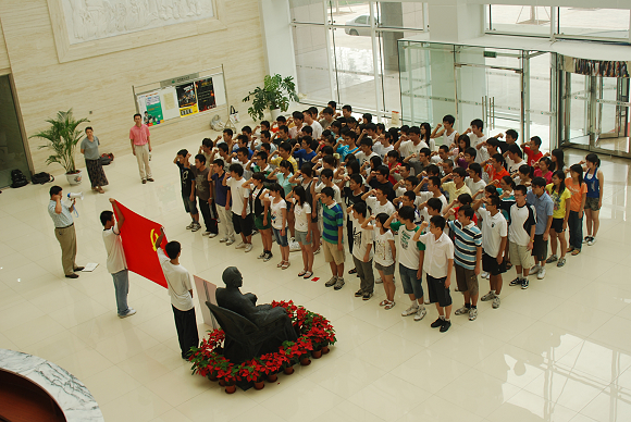 最后,宣誓活动在雄壮的国际歌歌声中结束。