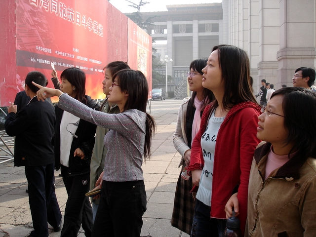 同样是龙的传人,当然有同样的感受。看着一张张历史的画面,聆听着历史的声音,大家的脑海里出现了两个字,并且越来越清晰——“统一”!