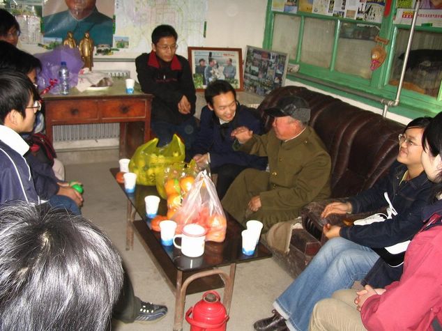 到了目的地,我们受到了丰台区民政局优抚科赵科长、王佐镇卢镇长等相关领导同志的热情接待。学员们先后探访了两户革命老战士。我们送去了水果鲜花等慰问品,来到革命老战士的家,我们围着老英雄们展开了座谈会。英雄们都很高兴我们的到来,说大学生就应该多接受这种爱国主义教育。