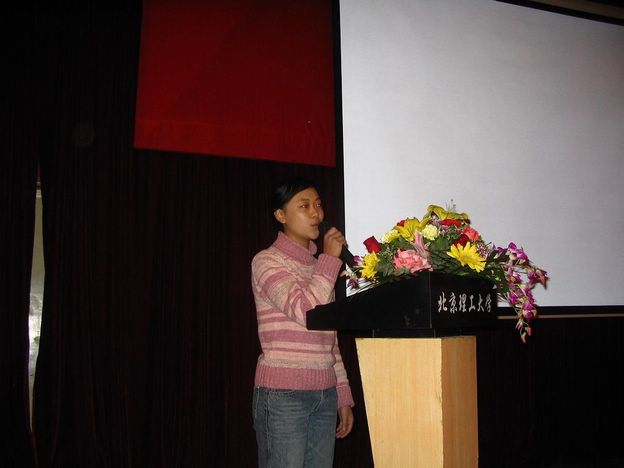当主持人宣布决赛开始后,整个赛场都一直沉浸在轻松愉快的气氛中。在演讲环节中,朱崇燕同学慷慨激昂的陈词一次又一次地激发了在场所有人的热情;配音环节中各个参赛队使尽了浑身解数,重现许多经典革命电影场景,其中,08110502班参赛队奉献了一出搞笑版的《紫日》配音,令观众们捧腹畅怀;而在自由创新展示中,各参赛队向我们充分展现了他们非凡的创新力,无论是革命歌曲联唱,还是流行歌曲改唱,都使评委和观众感受到了选手们无限的创新能力。