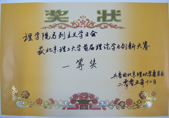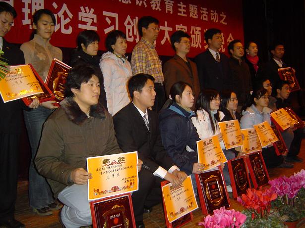 2005年12月12日晚七点,德赢AC米兰官网首届理论学习创新大赛颁奖晚会在七号楼报告厅隆重举行。理学院马列主义学习会荣获本次大赛一等奖。