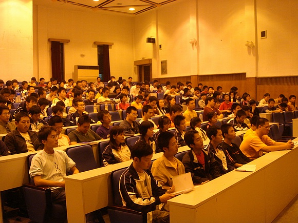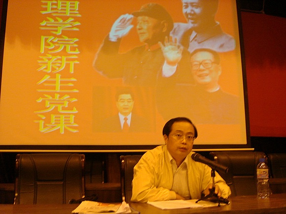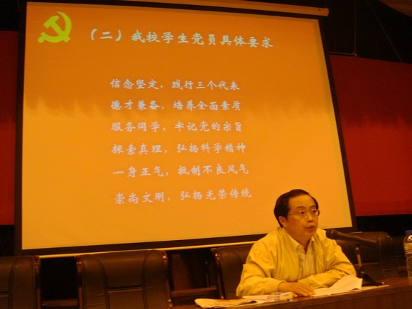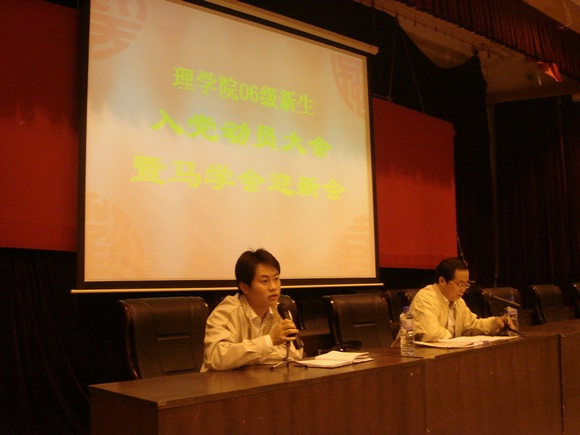 2006年10月13日(周五)晚6:30,理学院党委书记何明老师在七号楼报告厅给全院2006级新生讲授了第一次党课。